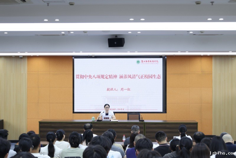 为持续推进学习教育和“新时代变革实践”主题宣讲巡讲,6月11日,校党委书记周一红讲授《贯彻中央八项规定精神涵养风清气正校园生态》思政课暨学习教育专题党课。校领导班子成员、中层正职干部、学生党员100余人参加学习。
